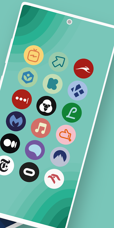 İki tonlu CMYK renk stili Simge Paketini temel alan bu minimal, düz, daire şeklini kullanarak andoid başlatıcınızı özelleştirmeye başlayın