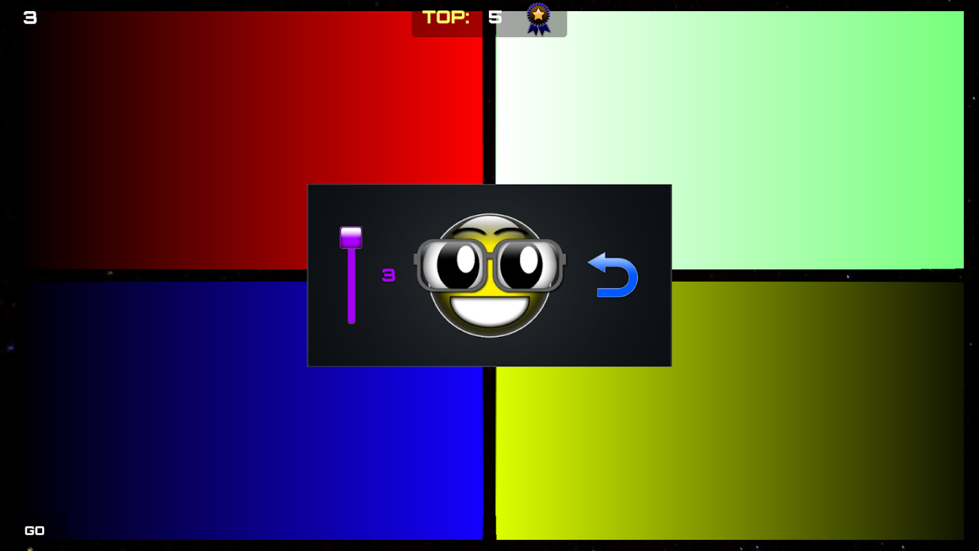 Players must watch a random generated sequence that lights a chosen color from (red, blue, green and yellow) and memorize it, when the sequence is done the player must touch the colors in the same order they where lit, if done correctly the game will repeat the sequence and add one more color to it. Repeat the sequence and see how many sequences you can memorize!