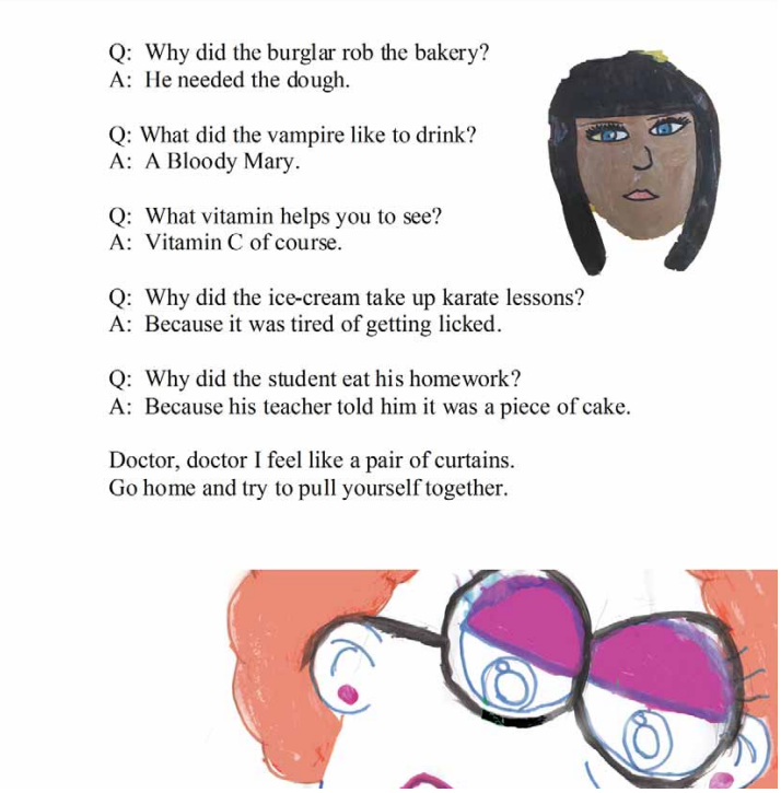 The joke were written by young people aged from ten to nineteen . The joke were found in others children's jokes books or copied from the internet and some were even created from the young people's imaginations