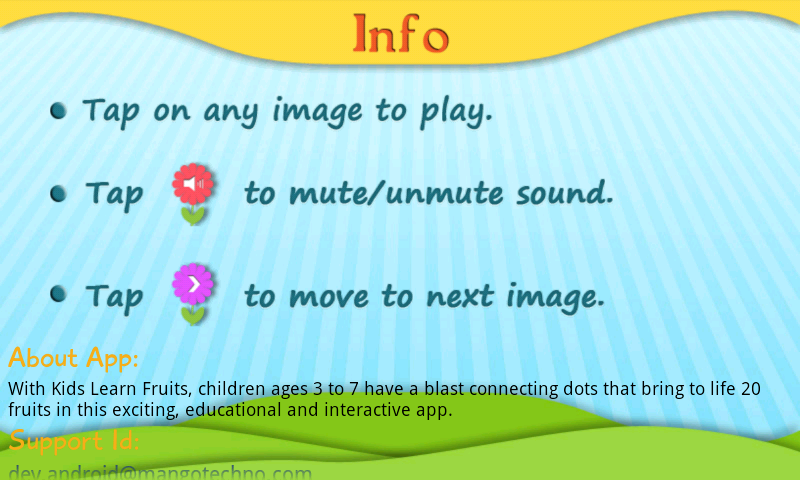 • Once children tap or connect the dots that outline a fruit, numbers are pronounced.