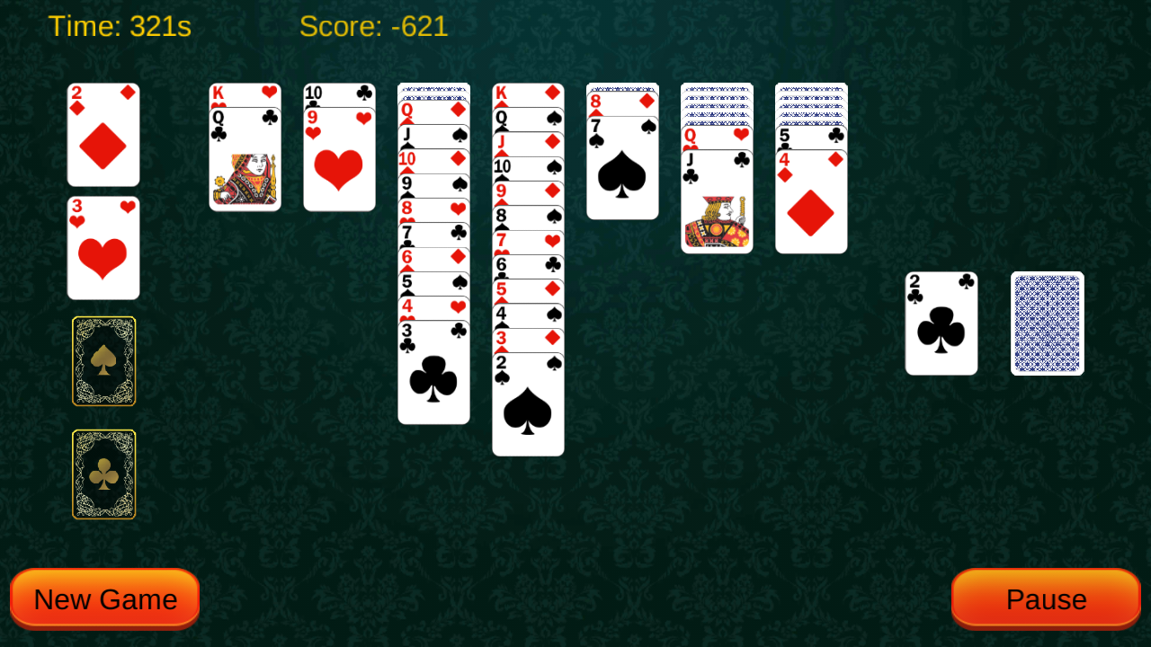 Klondike Solitaire is the most popular variation of the family of patience games played around the world. In UK the term Patience refers to solitaire with cards. A truly enjoyable and fun Klondike Solitaire card game experience. It will captivate you for hours! The game of Klondike Solitaire requires patience, bit of strategy and quite a bit of skill to be beaten.