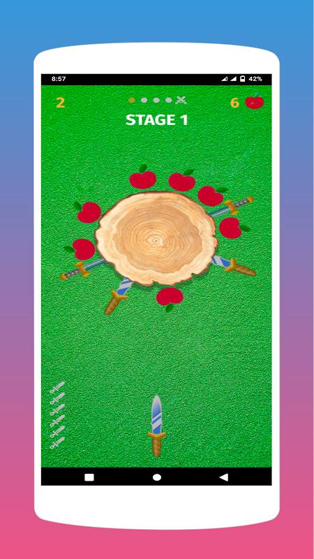 Throw the knives into the disc to break them. Slash the apples and unlock new knives.