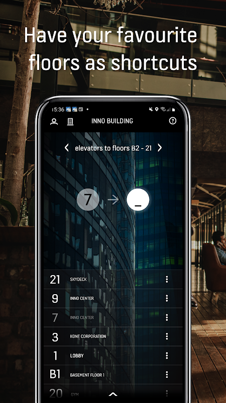KONE Office Flow uygulaması ile asansörü çağırabilir ve gideceğiniz yere yönlendirilirsiniz. Uygulama tercihlerinizi hatırlar ve günlük sürüşlerinizi kolaylaştırır.