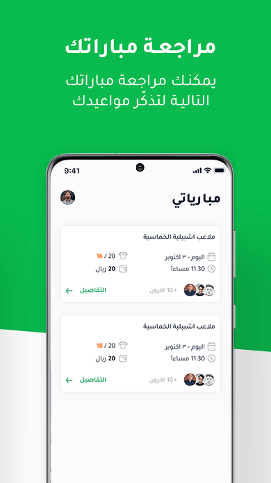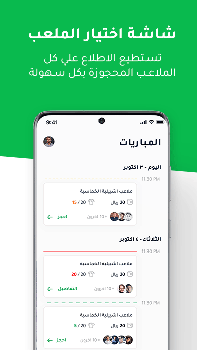 2- يوفر التطبيق عدد كبير من المباريات يمكنك حجزها في اي وقت