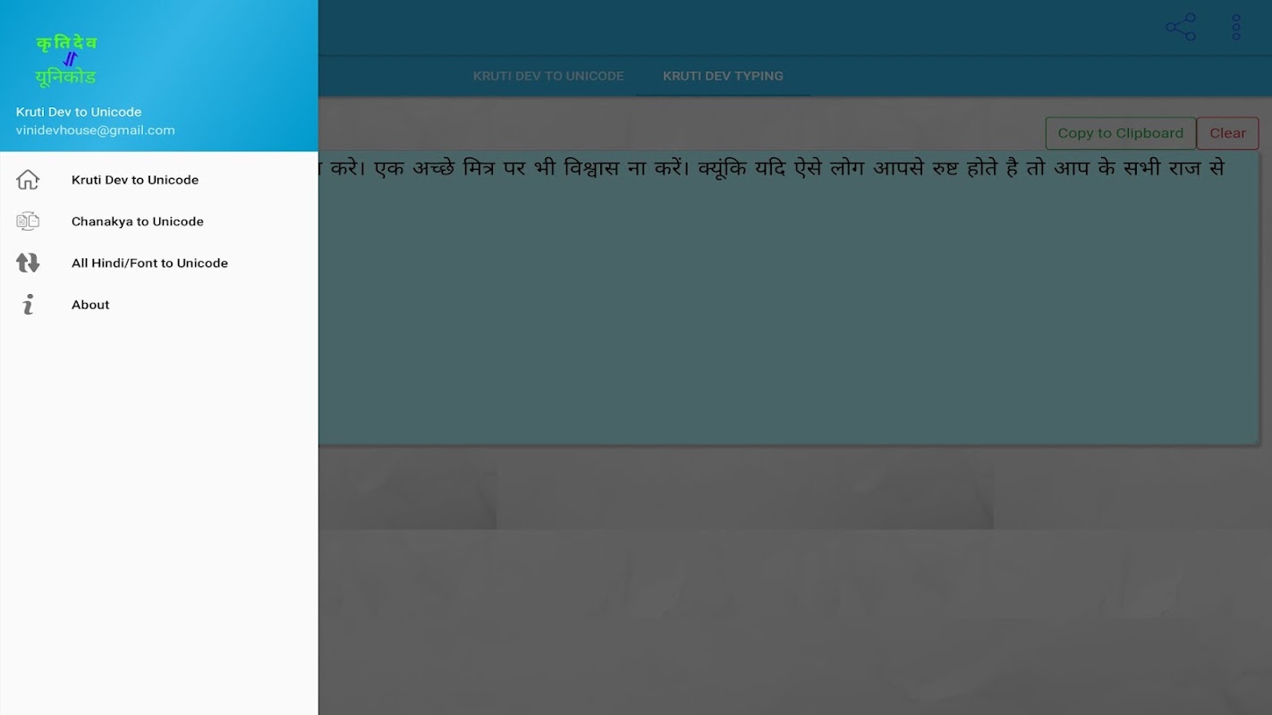 Single App'den Krutidev'i Unicode'a ve Chanakya'yı Unicode'a çevir