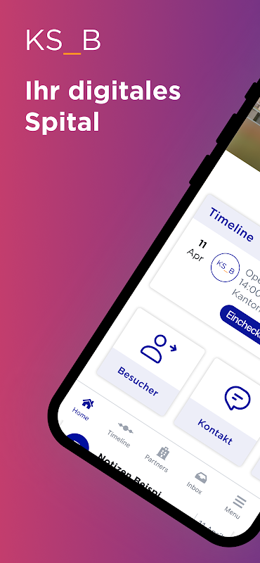 Randevular, veriler, ipuçları veya haritalar: KSB uygulamasıyla, Baden Kanton Hastanesi'ndeki konaklamanızla ilgili tüm belgelere her zaman cep telefonunuzdan ulaşabilirsiniz. Çevrimiçi kaydolun veya anketlerinizi doğrudan uygulamada doldurun.