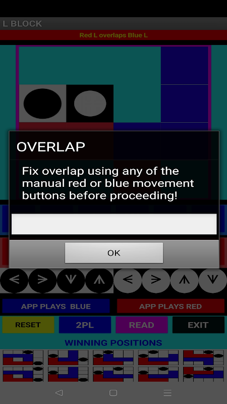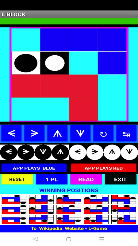 Mavi veya kırmızı L'yi, ardından nötr blok düğmelerini hareket ettirerek taşları yerleştirin. Ardından bilgisayarın hamlesi için kırmızı [APP OYNAYAN KIRMIZI] / [BLUE OYNAYAN KIRMIZI] düğmesine basın.