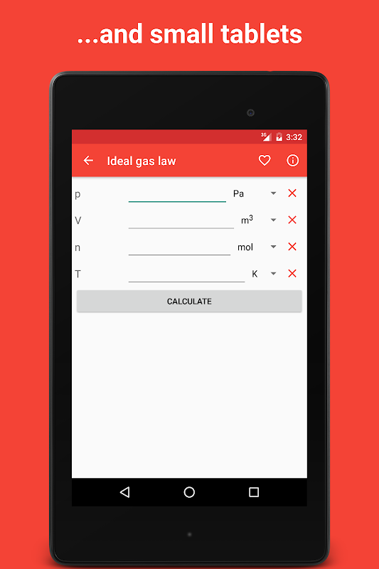 The tools cover different topics from solution properties like pH-value to physicochemical calculations like the Boyle-Mariotte-Law. Additionally the app features an unit converter for different values like length, volume, weight etc.