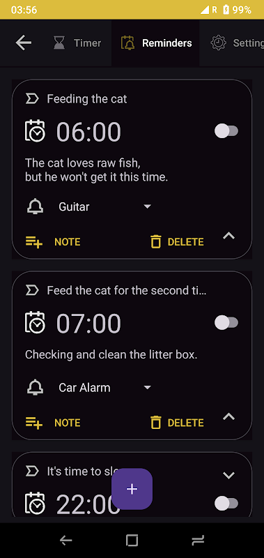 • ad ve notlarla birlikte zamanlayıcıların listesi olan hatırlatıcılar oluşturmak,