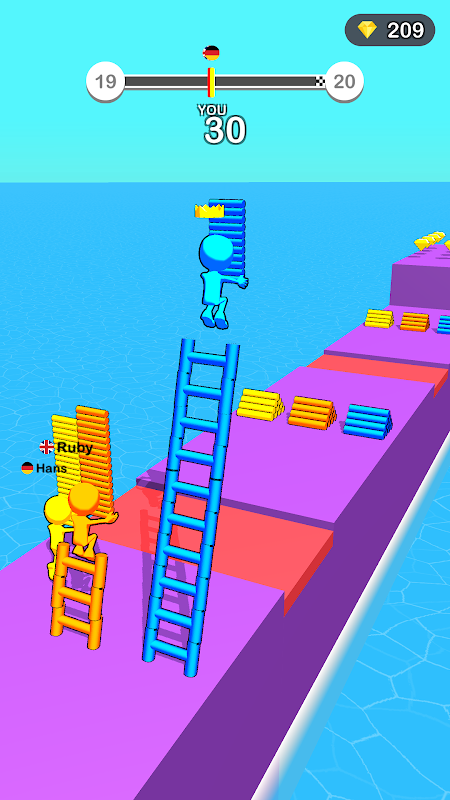 Merdiven koşusu ve merdiven koşusu oyununun en iyi tırmanıcısı olabilirsiniz. Bunun için akıllıca merdiven tuğlaları toplayarak merdiven inşa etmeniz gerekir. Merdiven yarışı oyunlarının engellerini aşmak için merdivenin uzunluğunu artırın. Birçok rakip de bu merdiven tırmanma oyununda sizi yenmek için tuğla topluyor ve merdivenler yapıyor. Bu yüzden, bu merdiven oyununu kazanmak için merdiven inşa etmek için acele edin.