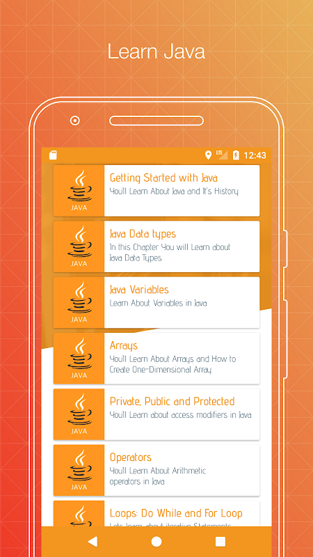 Orion - Android Eğitimi, 'Android Uygulama Geliştirme'nin tüm aşamalarında size rehberlik eder. Kısa bir Java Eğitimidir. Android Geliştirme, Bilgisayar Bilimi / Bilgisayar Programlama alanında çok önemli bir beceri haline geldi. İster Android için Kotlin, ister Java Eğitimi, ister yeni başlayan veya Orta Düzey Uygulama geliştiricisi olun, Orion Android Eğitimimiz Her Zaman Android Uygulama Geliştirmeyi Öğrenmenize Yardımcı Olacaktır. Android için Android Uygulama Geliştirme ve Kotlin hakkında harika derinlemesine bilgilere sahiptir.Ayrıca, Android Geliştirmede tam bir acemiyseniz Java'yı Öğrenebilirsiniz. Orion Android Tutorial uygulaması, tüm acı verici bilgilere girmeden kolayca ve etkileşimli olarak geliştirmenize yardımcı olur. Ayrıntıları sizin için özetler ve Android Uygulama Geliştirmeyi Öğrenmek için gereken kilit noktaya odaklanmanıza yardımcı olur.Bu Kursa başlamak için Bilgisayar Bilimi / Bilgisayar Programlama alanında herhangi bir Dereceye sahip olmanız gerekmez.