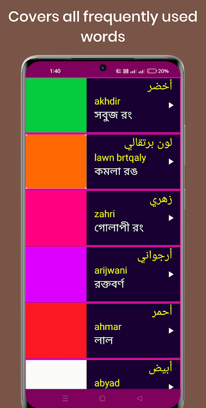 🏆 Bangla uygulamasından Arapça Konuşulanları Öğrenin Özellikleri: