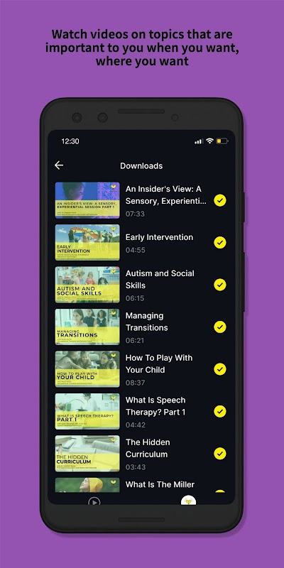 Otizm uzmanlarından oluşan bir ekip tarafından sunulan isteğe bağlı, küçük boyutlu videolar.