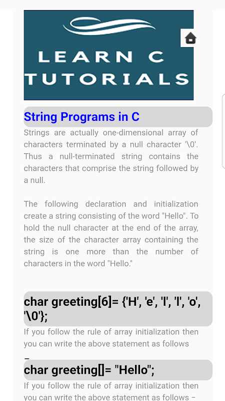 -> Learn C Tutorials Offline App come with complete comprehensive and responsive layout.