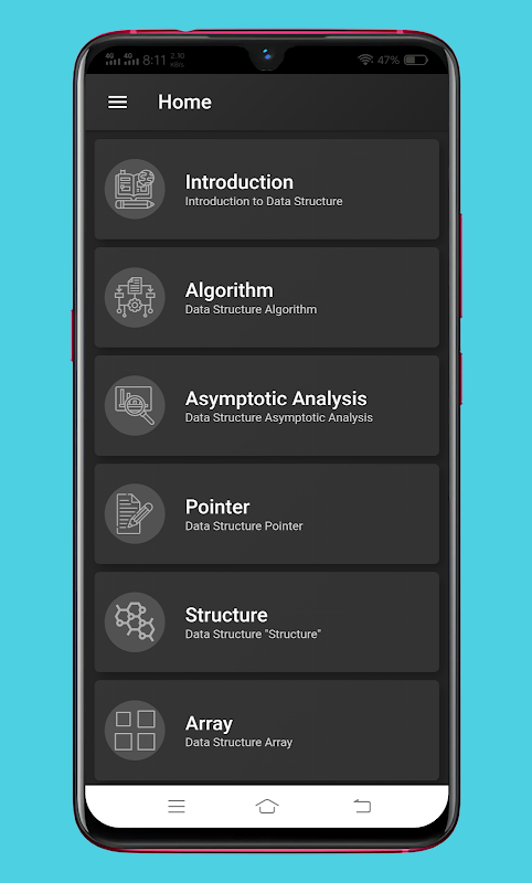 This App is designed for Computer Science graduates as well as Software Professionals who are willing to learn data structures and algorithm programming in simple and easy steps.