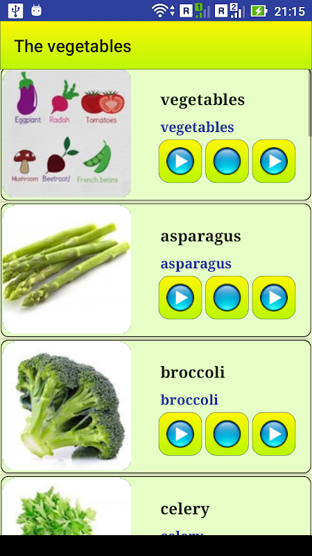 İngilizce dilinde en çok kullanılan kelimeleri öğrenin, Şunlar gibi daha fazla konu bulabilirsiniz: Aile, Günler, Renkler, Restoran ve Yeme, Hava, Sayılar, Konut, Hayvanlar, Giysiler, Dillerin isimleri, Ulaşım, vücudun organları, Hastane ve doktorlar, Meyveler, Sebzeler, Sıfatlar ve fiiller.