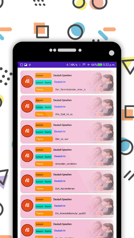 Deutsch sprechen A1-A2-B1-B2'nin bu süreci sayesinde herkes kolayca öğrenebilir (deutsch lernen) çok basittir. "A1 A2 B1 B2 başlangıç seviyesi için almanca ücretsiz öğrenin". Bu, Almanca Dilbilgisi için mükemmel bir çözüm için mükemmel bir uygulama olacak.
