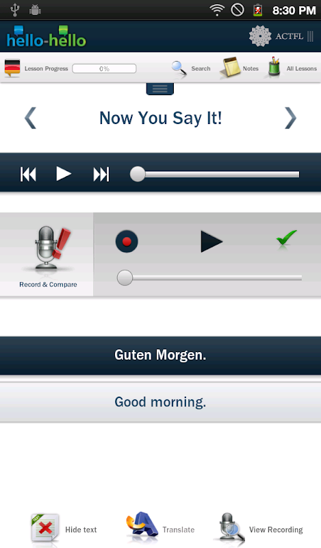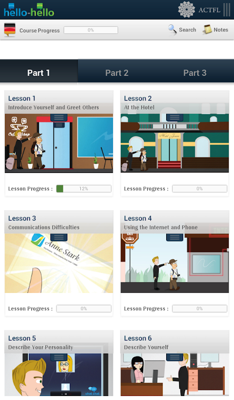 COMMUNICATION SKILLS: Learn to communicate effectively from LESSON 1! Learn German with Hello-Hello offers 30 conversational lessons based on real life situations rather then a collection of out-of-context words and phrases. Dialogues are presented and then broken down into sentence by sentence where you can practice pronunciation and writing skills