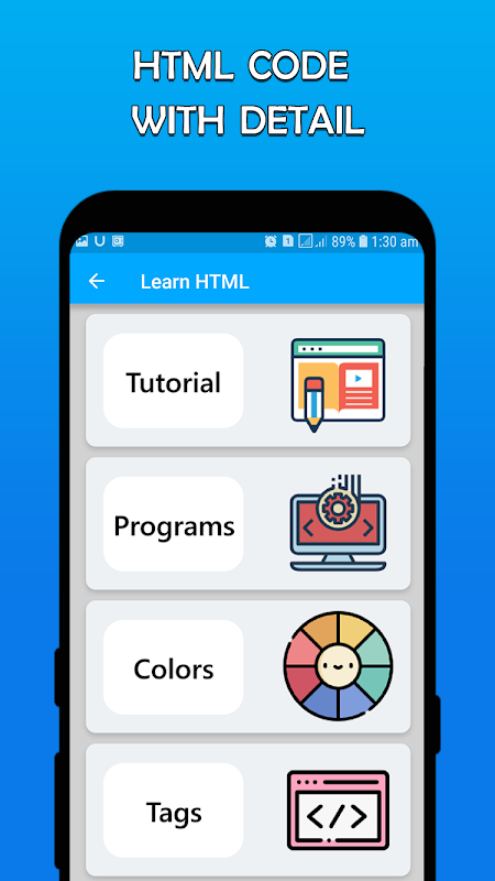 HTML Tutorial App is a comprehensive basic tutorial complete guide to one of the most popular programming languages in the world. you’ll learn object-oriented web programming and have the ability to write clear and valid code in almost no time at all. So don't hesitate. Begin our step-by-step tutorial today, and learn a new skill!