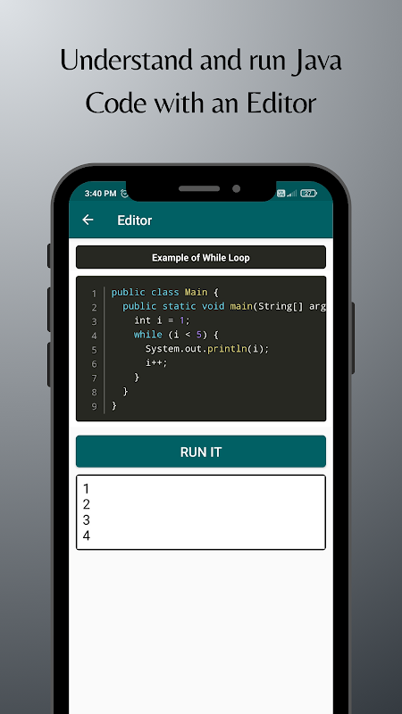 * Kod Düzenleyici: Java kodunu doğrudan uygulamanın yerleşik düzenleyicisinde anlayın ve çalıştırın.