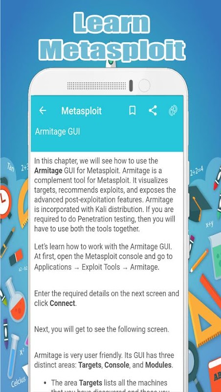This app will help to understand metasploit commands. This metasploit tutorial app contain lot of this things which will increase your learning experience.