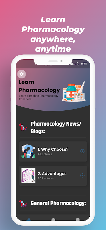 Farmakoloji hakkında daha fazla bilgi edinmenizi öneririz. Sadece uygulamamızı yükleyin ve farmakolojiyi öğrenmenin keyfini çıkarın. Uygulamamız Farmakoloji öğrenmek farmakoloji ile ilgili tüm bilgileri içerir. Uygulamadaki dersler çok basit ve detaylı. Böylece herkes kolayca öğrenebilir ve anlayabilir.
