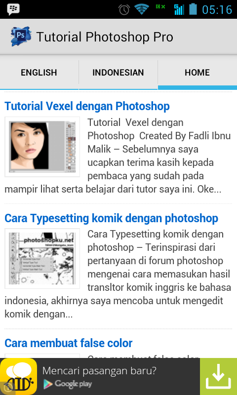 Choice set of photoshop tutorials, ranging from basic to advanced. With this application you can learn Adobe photoshop, Anywhere and anytime without the need for an internet connection. In addition, we provide a video file and the files needed for the exercises.