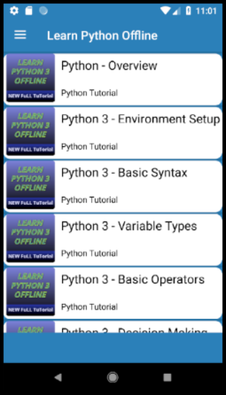 Bu Uygulama ile Python 3 kavramı hakkında okumak internet bağlantısına gerek yoktur.