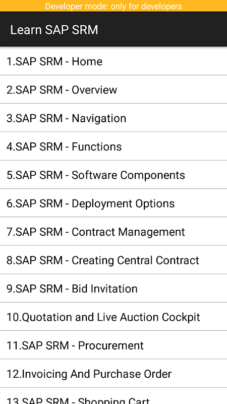 The Learn SAP SRM has been prepared for professionals who aspire to learn the fundamentals of SAP SRM. Consultants and project team members who have already been implementing SAP SRM Server can also draw benefits from the Learn SAP SRM and refresh their knowledge.
