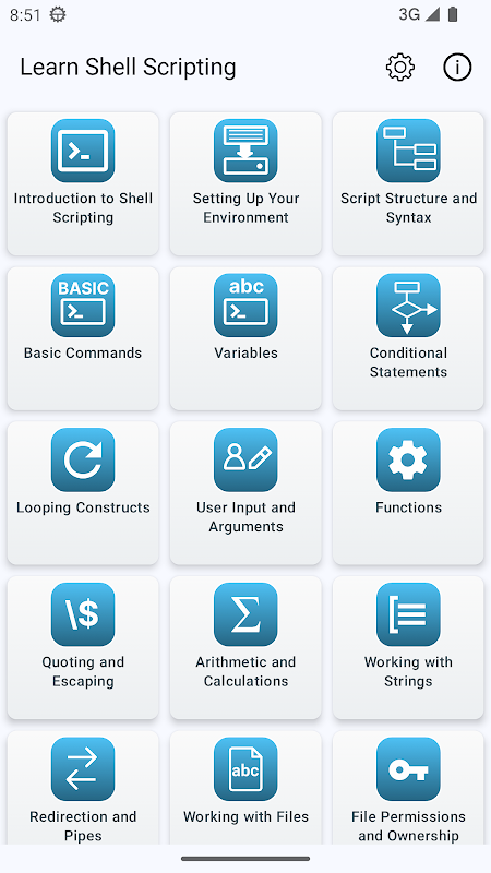 Kapsamlı eğitim uygulamamızla Shell Scripting ve Bash programlamayı öğrenin. Scripting yolculuğuna yeni başlayanlar ve iş akışlarını otomatikleştirmek isteyen profesyoneller için mükemmel.