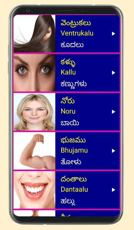 5. Uygulama, hayatın farklı durumlarında Telugu'yu anlamanıza ve konuşmanıza yardımcı olmak için sık kullanılan tüm Telugu kelimelerini ve cümlelerini içerir. ⛱️✈️🚙🚑