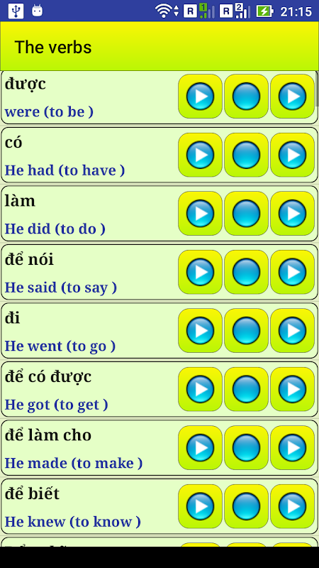 Vietnam dilinde en çok kullanılan kelimeleri öğrenin, Şunlar gibi daha fazla konu bulabilirsiniz: Aile, Günler, Renkler, Restoran ve Yeme, Hava, Sayılar, Konut, Hayvanlar, Giysiler, Dillerin isimleri, Ulaşım, vücudun organları, Hastane ve doktorlar, Meyveler, Sebzeler, Sıfatlar ve fiiller.