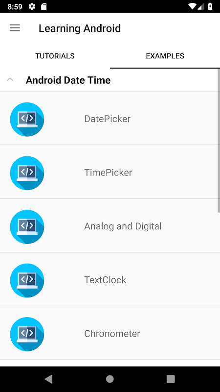 Bu sekmede, örnek kodu bulabilirsiniz. Bu Android Örnekleri bölümünde, çeşitli android örnek ve örnek kodları bulabilirsiniz. Android kullanıcıları için Uygulamalar geliştirirken sadece Android Studio'daki ilgili dosyalara kodları kopyalayıp yapıştırmanız gerekir. Tüm Android örnekleri Android Studio'da denenmiş ve test edilmiştir.