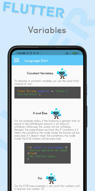 In this application you can learn Flutter and Dart on your own cell phone.