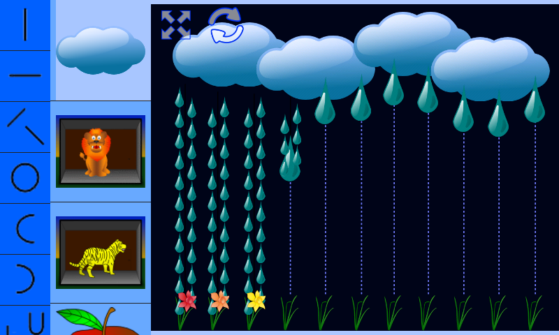Le trait n’est dessiné que si l’enfant le suit avec assez de précision quelle que soit la vitesse. C’est l’occasion d’enseigner la précision à l’enfant avec humour !