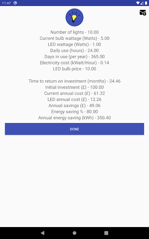 Standart bir ampulden LED'e geçerseniz bu hesap makinesi aşağıdaki bilgileri sağlayacaktır: