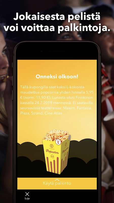 The Movie Game bir oyun denetleyicisi olarak akıllı telefonunuzu kullandığınız bir interaktif oyun ve oyun değişiyordu görünür büyük ekran oynamak için filmin önce Finnkino sinemalar olduğunu. Sen harika ödüller kazanabilirsiniz. Yani Film Oyunu oynamaya hazır cep telefonu tutmak!