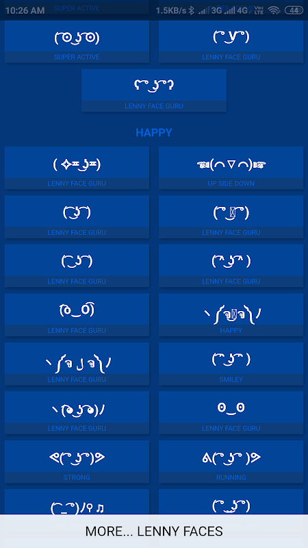 and one more thing our LennyFaceGuru.com is one of the best websites for Lenny's faces or Text faces because we have designed our website so user-friendly, result the user can easily use that it's very easy to use and its remember your recent used Lenny faces.