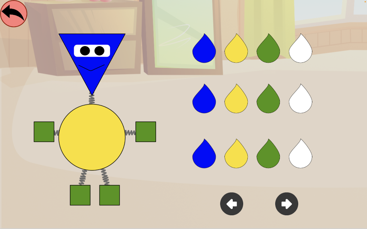 - Çocuk, şeklin adını duyarken robot yapmak için farklı şekillere tıklar.