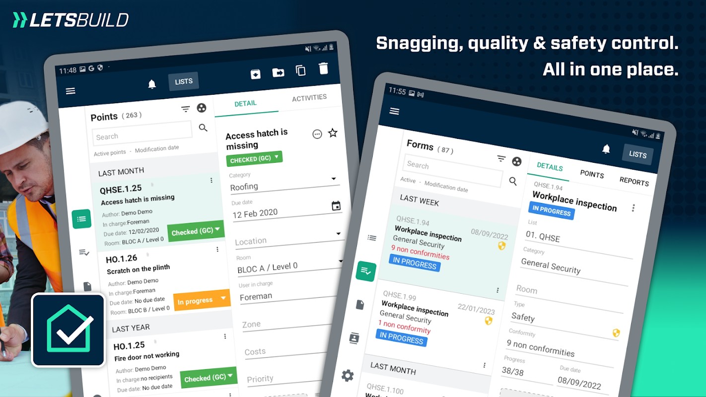 İnşaat ekipleri için takılma, kalite ve güvenlik kontrolü.