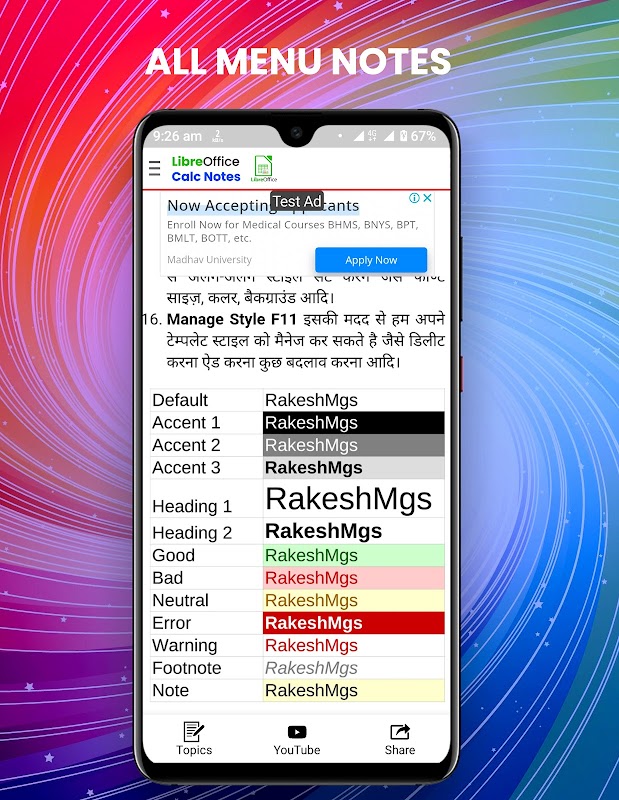 Bu uygulama yardımıyla LibreOffice Calc ile ilgili tüm bilgilere ulaşabilir, not almak veya not almak için kullanabilirsiniz.