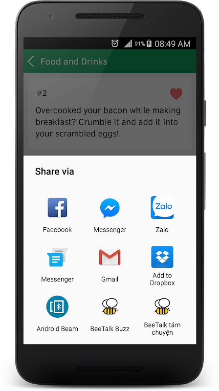 Life hacks, tips and tricks to optimize your life are available in this small app. It contains Life Tips & Tricks that are easy to share and save to favorites.