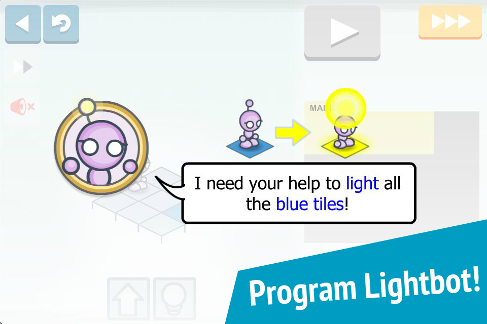 Lightbot Junior lets players gain a practical understanding of basic concepts like writing instructions, debugging problems, simple procedures and loops, just by guiding a robot with commands to light up tiles and solve levels.