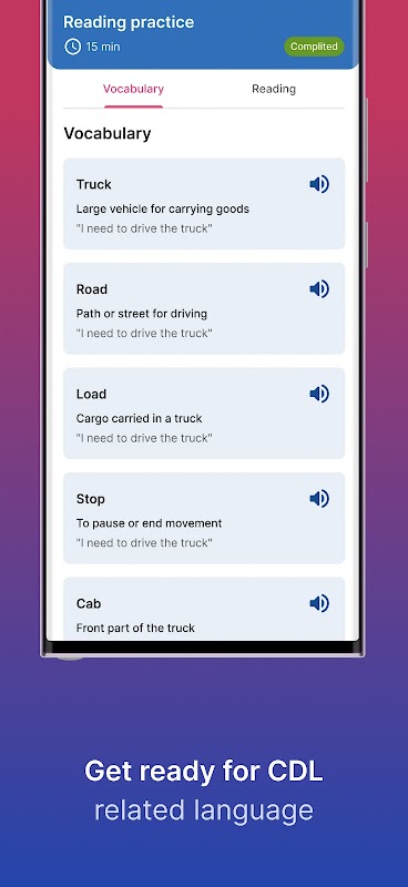 Yolda geçirilen yaşam için tasarlanmış gelişmiş bir yapay zeka İngilizce öğretmeni. CDL sınavlarını geçmek, FMCSA* standartlarını karşılamak ve günlük iş görevlerinizi güvenle halletmek için gerçek hayatta kullanılan İngilizceyi öğrenin.