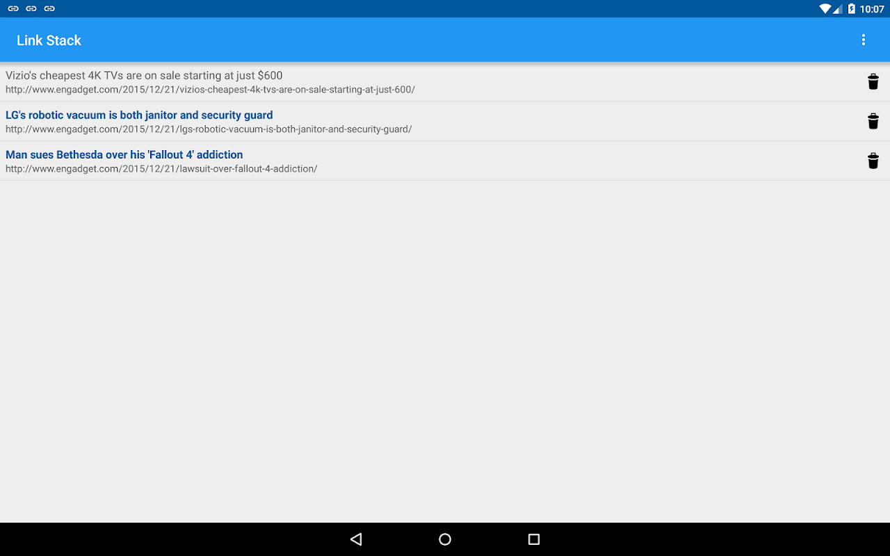 doğrudan uygulamayı başlatmak zaman, daha sonra okumak istediğiniz bağlantıların listesi listesinde görüntülenir.