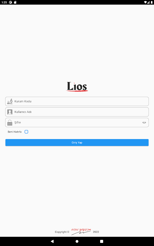 Yalnızca mevcut Lios kullanıcıların uygulamaya giriş yapması mümkündür. (Her hangi bir yeni kullanıcı kayıt ekranı bulunmamaktadır.)