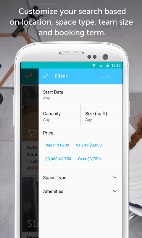- Konum, uzay tipi, takım büyüklüğü ve rezervasyon dönemi dayalı aramanızı özelleştirin.