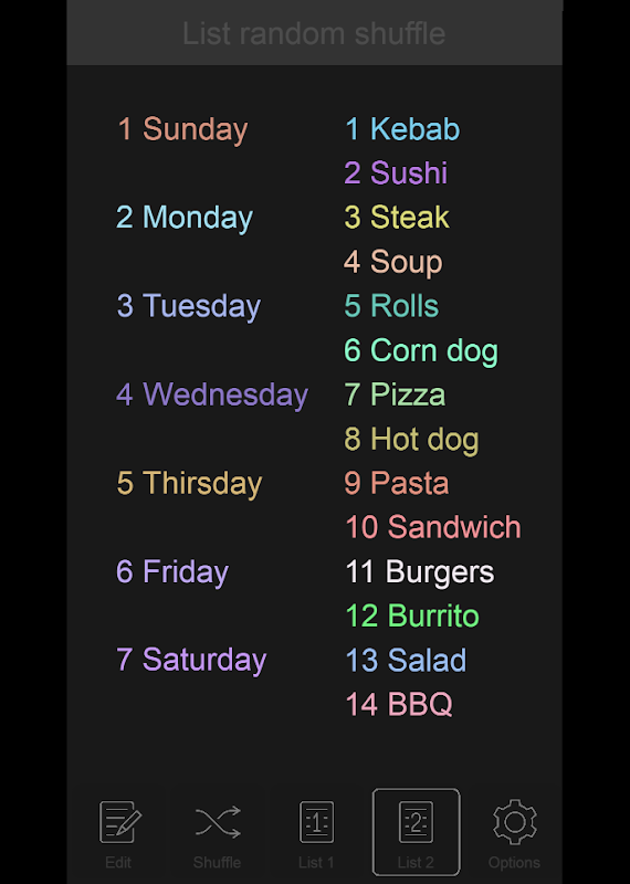 Sağdaki liste kopyasını rastgele sıralamak için 'Karıştır'a dokunun.