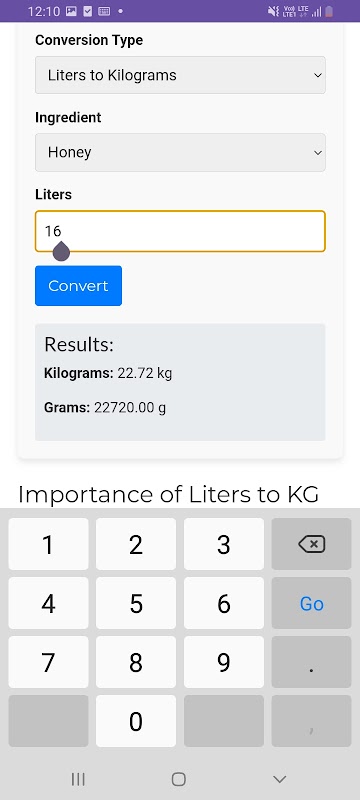 Bu Litre ve KG uygulamasının yardımıyla Litreyi KG'ye ve KG'yi Litreye dönüştürmek kolay ve basit hale geldi.
