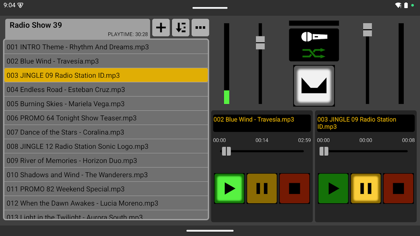 Canlı DJ seansları, radyo ve podcast'ler için çift ses oynatıcısı
